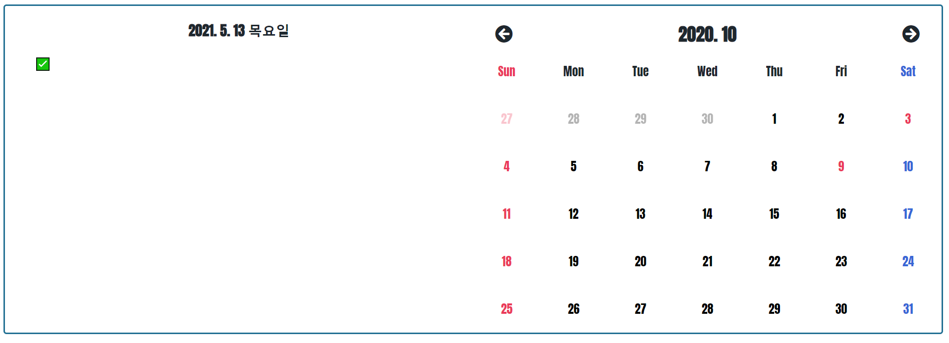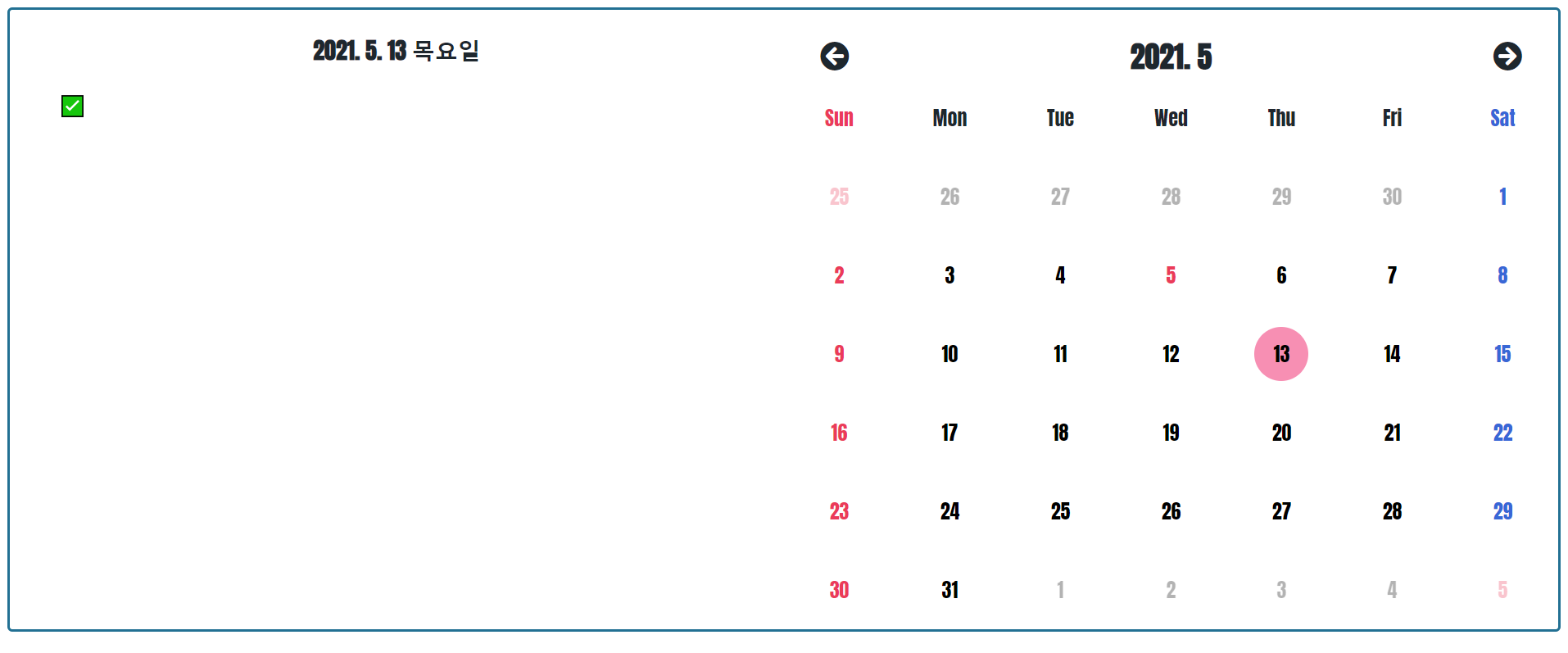 | [Javascript] Calendar & To-do List ②Calendar (0) | 2021.05.12 |