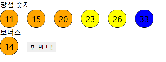 render 부분은 위와 같이 정의된다. 결과창은 winBalls에 담긴 일곱 개의 숫자들 각각을 Ball 컴포넌트 형태로 만들고, 보너스는 bonus의 값이 존재할 때 Ball로 전달되고, 그 뒤에는 redo의 값이 true일 때 버튼을 만들어 주도록 한다. 이 버튼에는 onClickRedo를 onClick 조건으로 걸어 준다.
